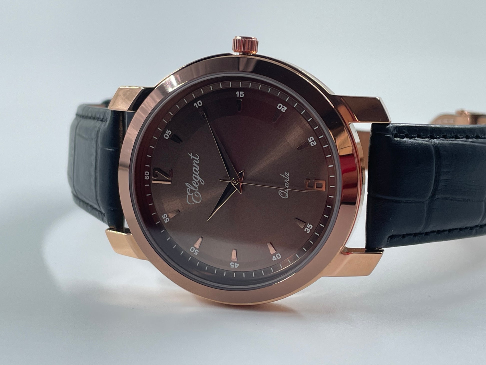 Make a bold yet classy statement with this BTC Elegant Rose Gold Brown Dial Watch, crafted for those who like their style rich and premium. The deep brown sunray dial set inside a polished rose‑gold case gives a luxurious look that works perfectly for both business and evening occasions.