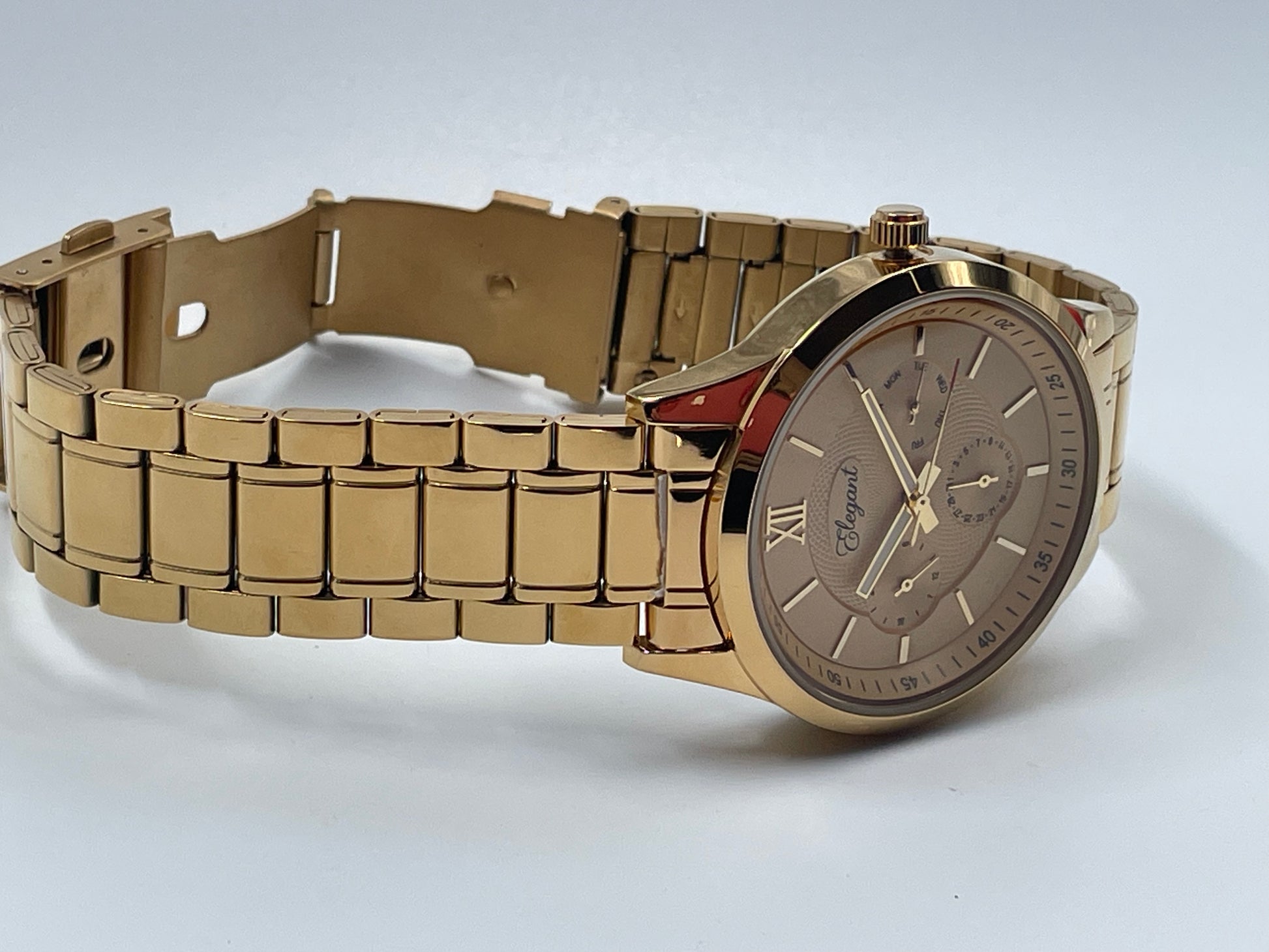 The watch is powered by reliable Japanese movement, ensuring precise timekeeping for everyday wear. Its stainless steel back and water-resistant construction add extra confidence for daily activities. The secure clasp and engraved Elegant branding highlight attention to detail and exceptional craftsmanship.