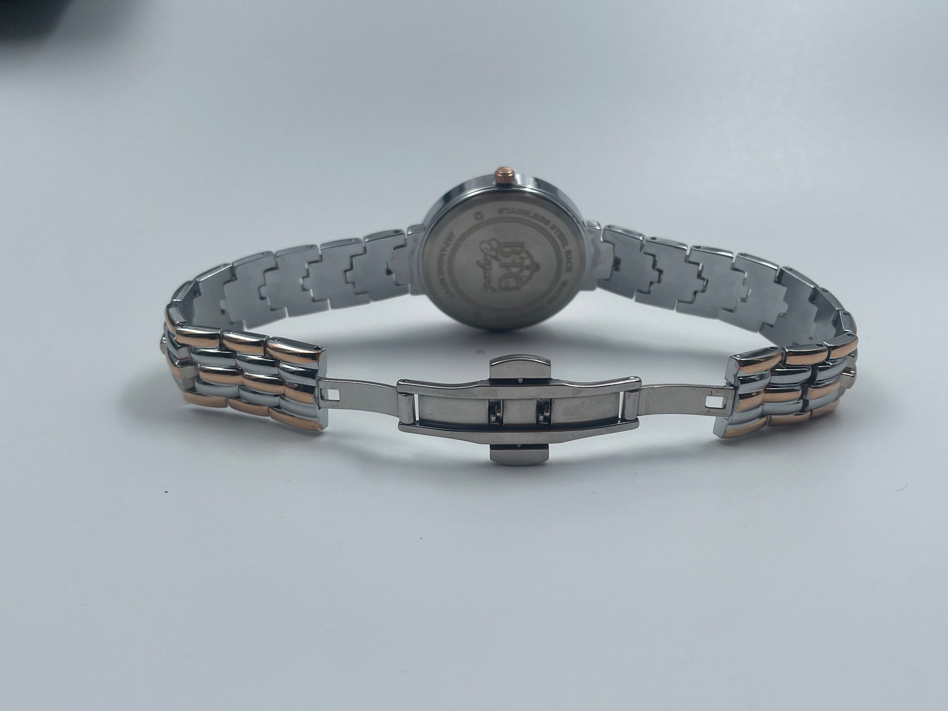 Driven by precise quartz movement, this watch offers dependable timekeeping and hassle-free maintenance for everyday use. The secure fold-over clasp and stainless steel back provide enhanced comfort and strength, making it a perfect choice for daily wear or any special occasion.