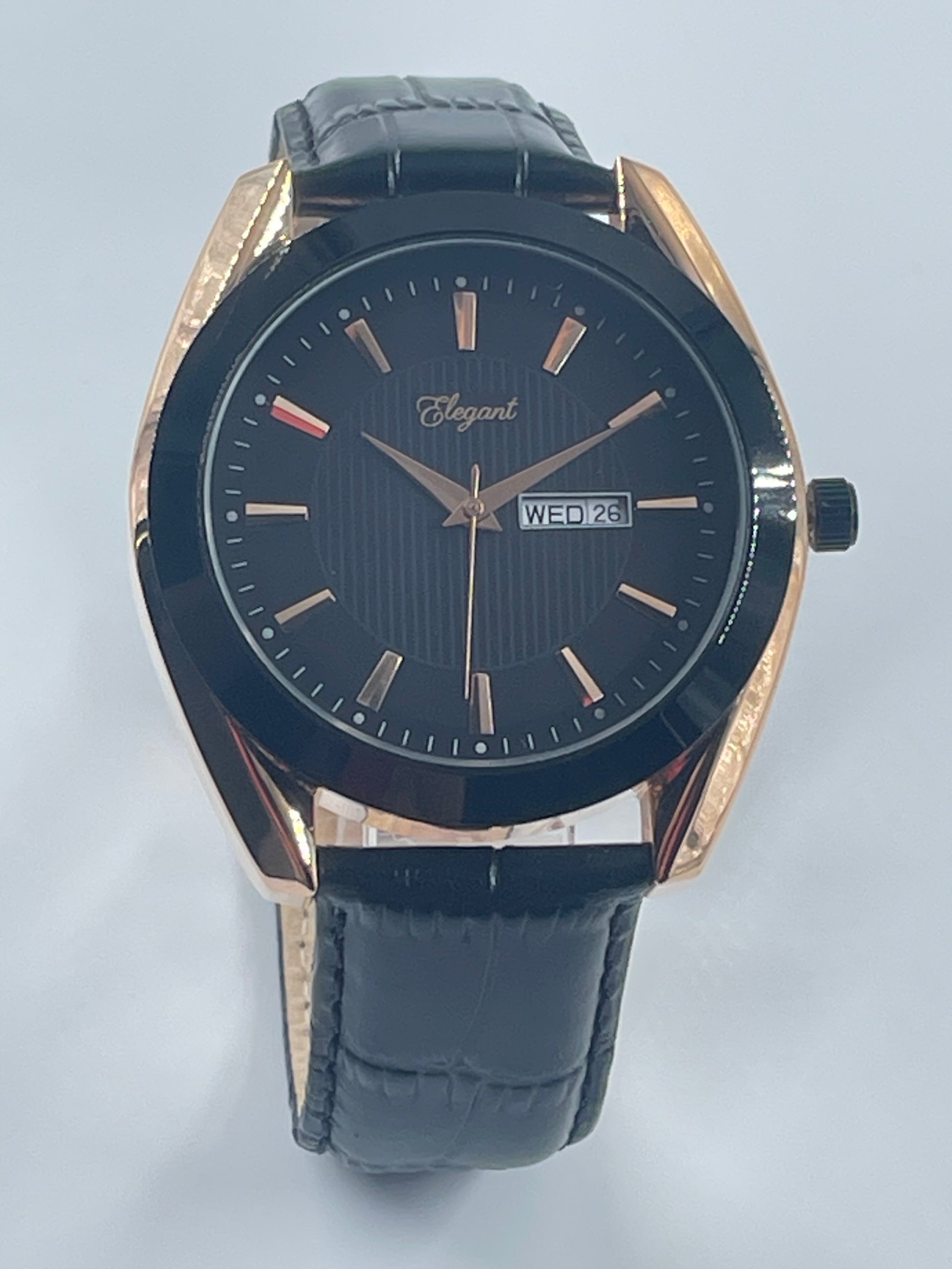 Command attention with this BTC Elegant Black & Rose‑Gold Day‑Date Watch, designed for those who want a bold, premium look every day. The deep black dial features a subtle vertical texture in the center and a smooth outer ring, giving the watch rich depth while keeping the overall design clean and modern.