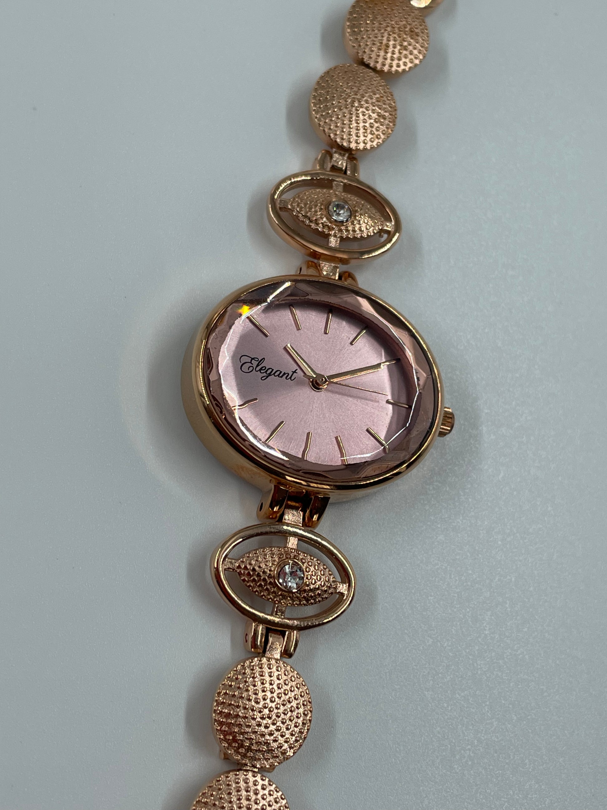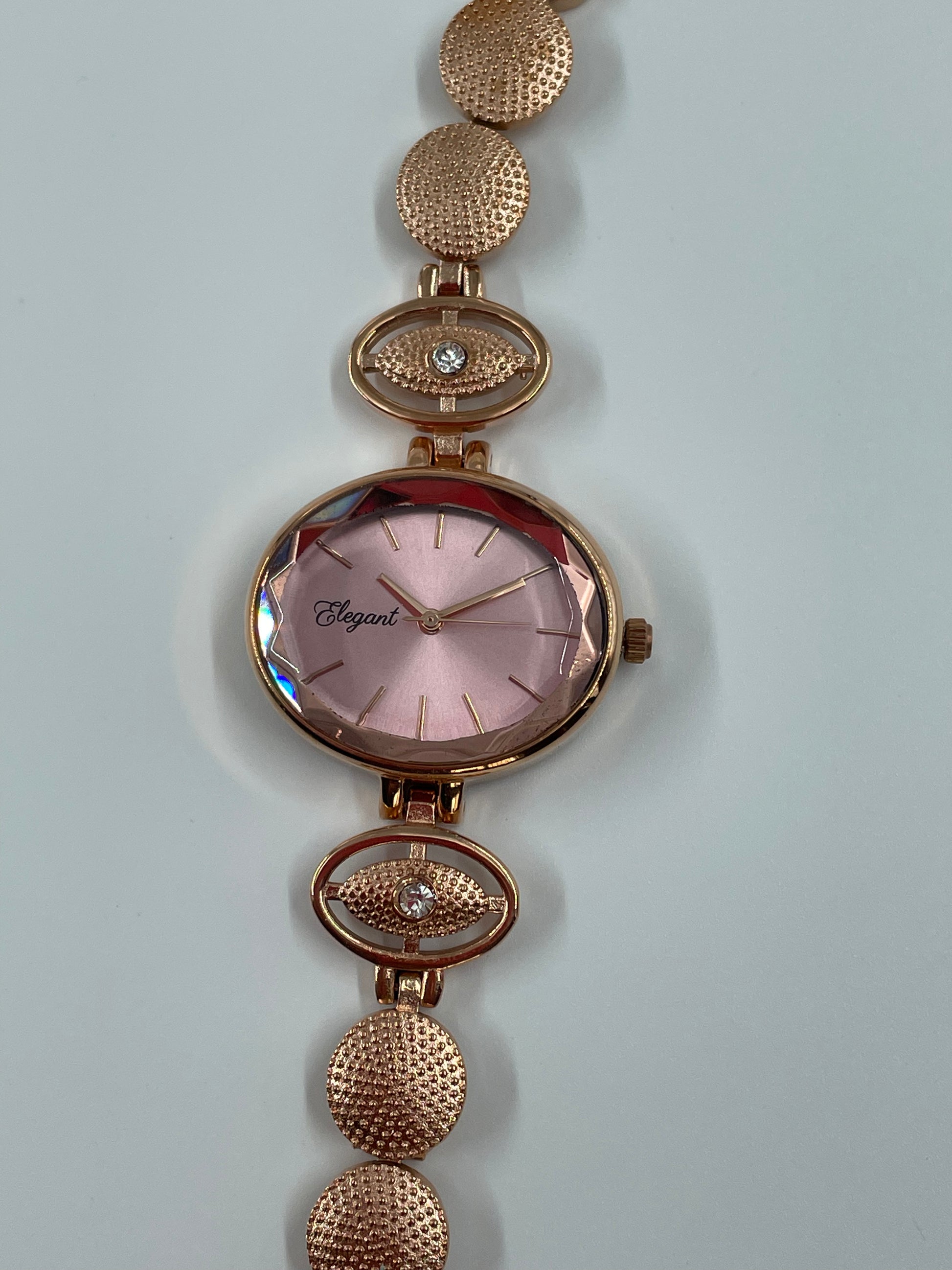 Elevate your elegance with the BTC Elegant Ladies Watch, designed to make every moment special. This exquisite timepiece features a luxurious rose gold-tone bracelet paired with a stylish oval dial available in rich PINK, perfect for any occasion. The intricate bracelet design showcases textured round links and sparkling oval accents set with crystal stones, blending sophistication and modern artistry.