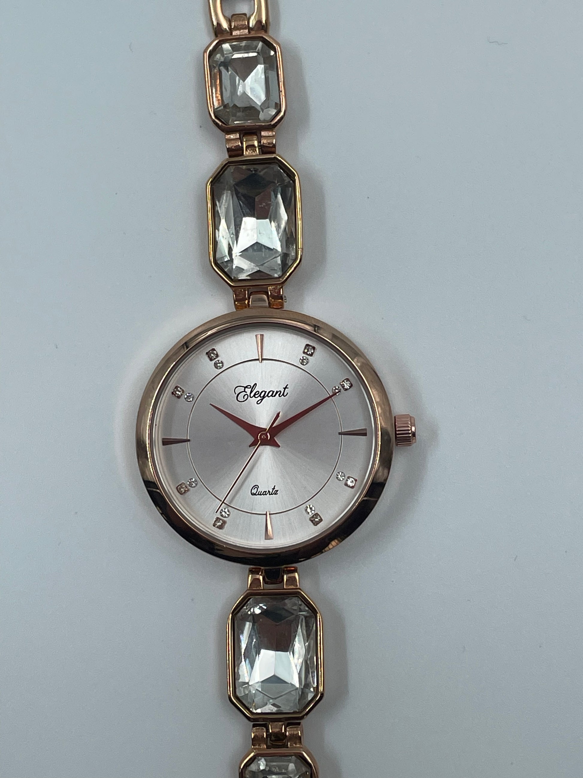 · Sophisticated SILVER dial with crystal hour markers and “Elegant” branding