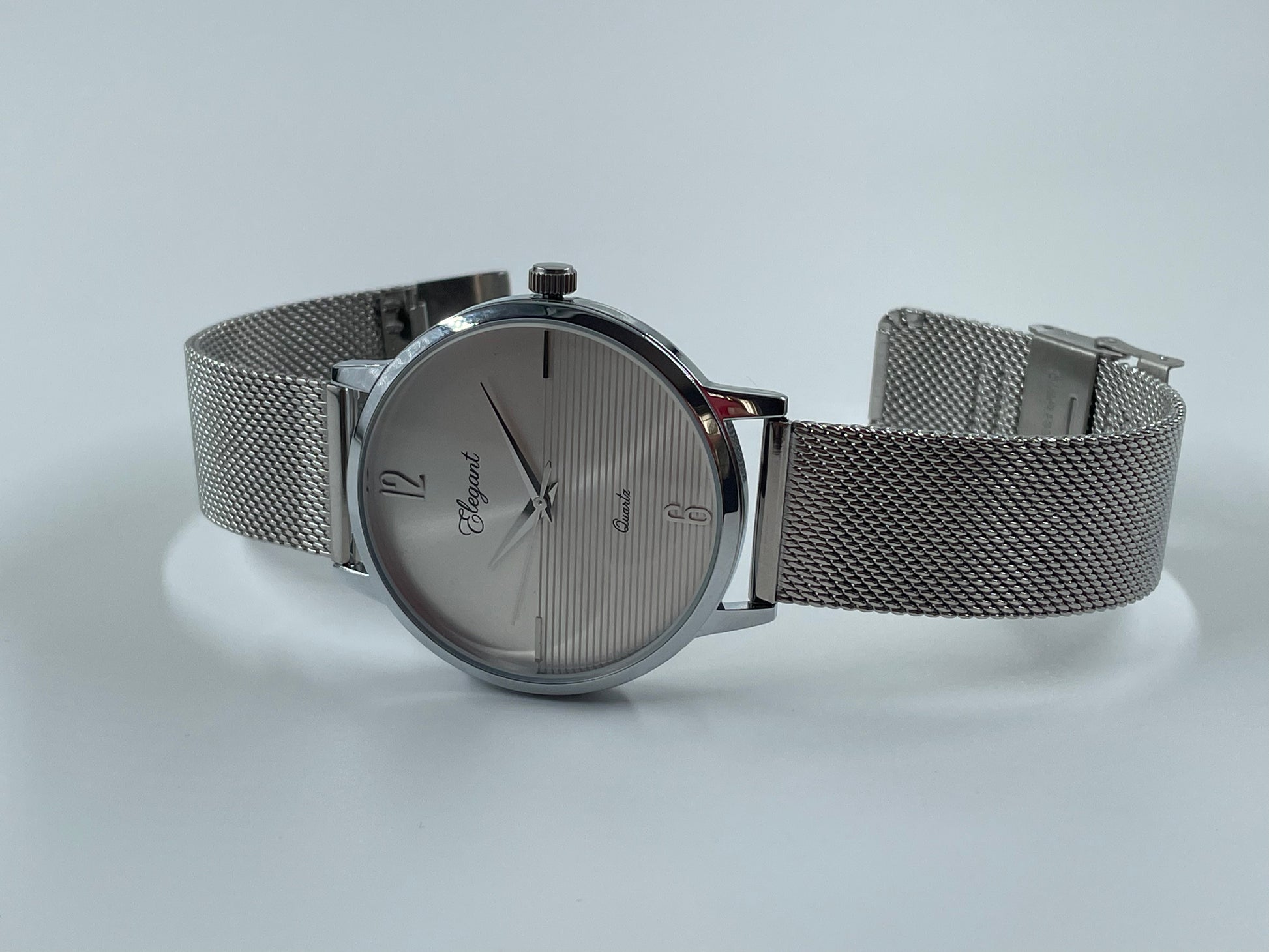 Minimal indices with numerals at 12 and 6 keep the dial easy to read, while the slim three-hand quartz movement ensures accurate, low‑maintenance timekeeping throughout your day. The stainless-steel mesh strap adds a sleek, contemporary touch, wrapping comfortably around your wrist with an adjustable clasp for a secure fit.